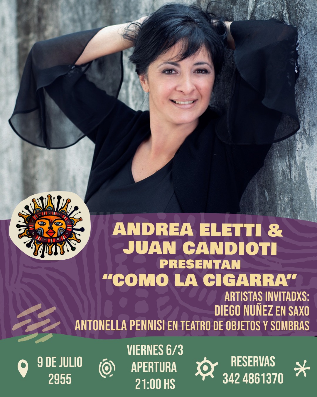 El próximo viernes 6 de marzo Andrea Eletti y Juan Candioti presentarán el espectáculo "Como la Cigarra". Un concierto para celebrar la obra musical y poética de Maria Elena Walsh mediante la revisión de sus grabaciones emblemáticas, transitando diferentes géneros de la música popular.