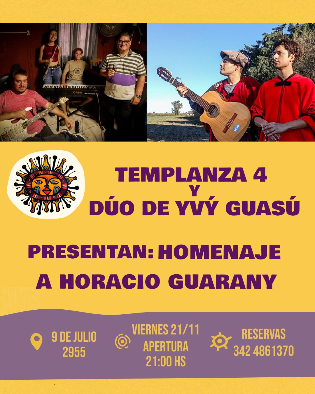 se presenta el cuarteto Templanza 4 y el dúo De Yvý Guasú con un pequeño homenaje a Horacio Guarany, rescatando parte de la obra artística de este referente popular.