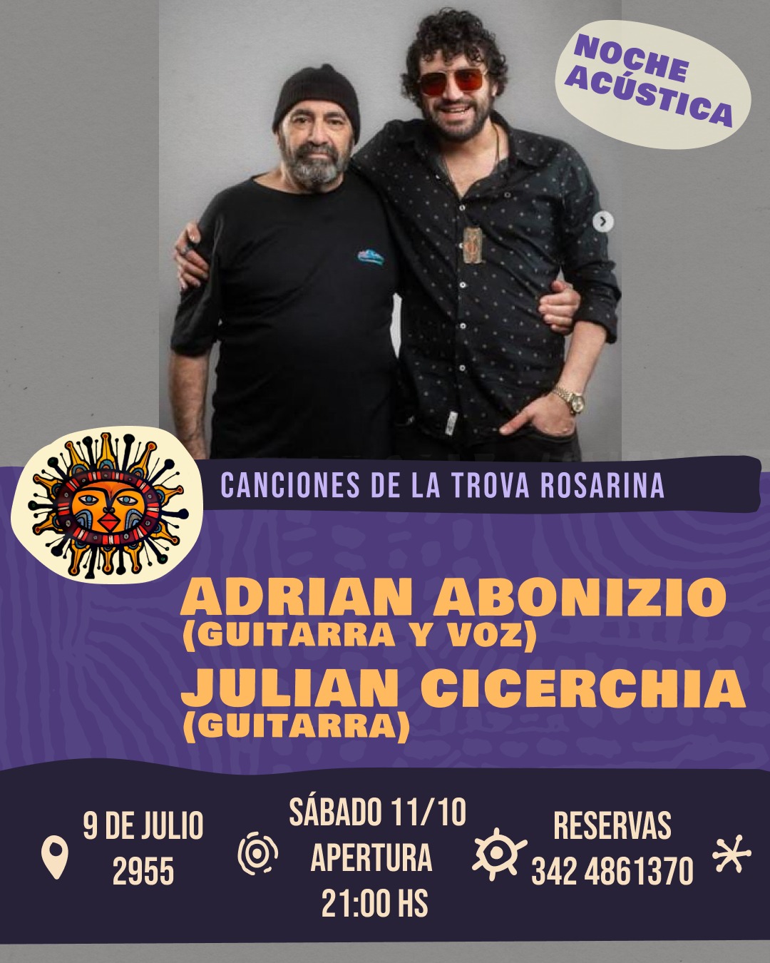 Se presenta Adrián Abonizio, unos de los principales referentes de la trova rosarina. En esta ocasión nos ofrecerá un set acústico junto a Julián Cicerchia, realizando canciones históricas del repertorio más profundo de la Trova Rosarina.