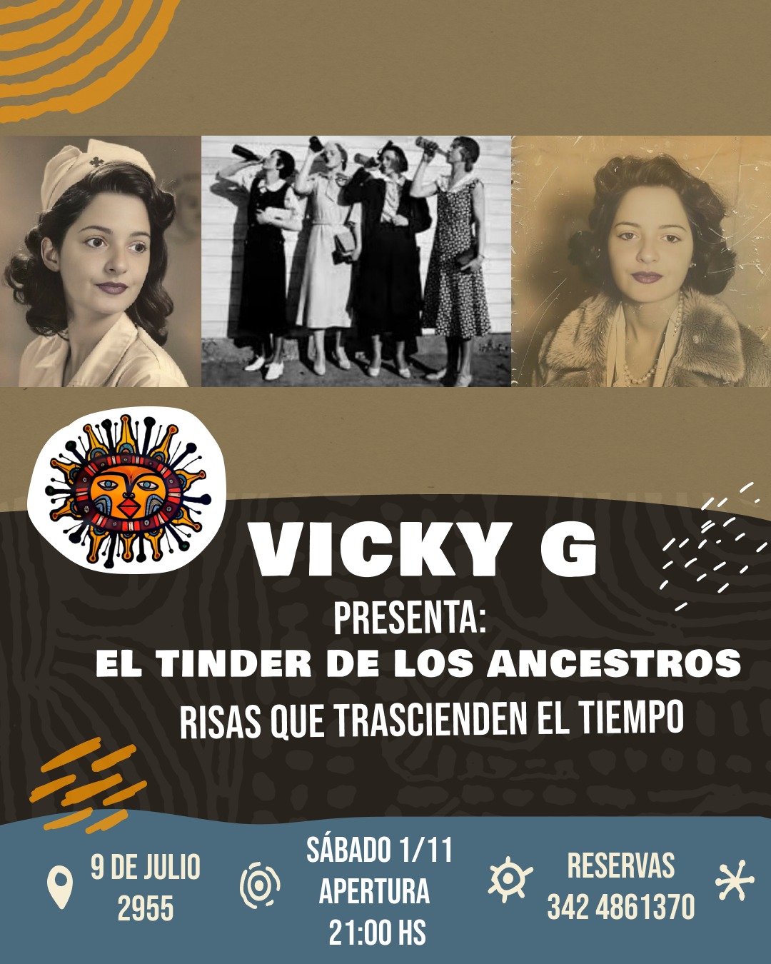 01 de Noviembre de 2025 - 21.00HS VICKY G "EL TINDER DE LOS ANCENTROS" VICKY G (Vicky Grigera Dupuy) presentará su espectáculo unipersonal de humor, “EL TINDER DE LOS ANCESTROS, risas que trascienden el tiempo”.Un espectáculo para toda la familia. |